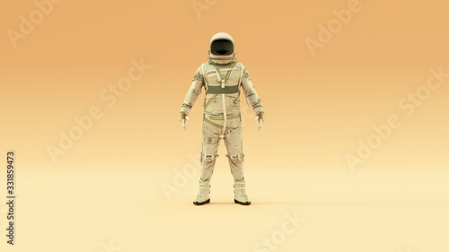 The watermark will not be included on Wall mural.: Retro astronaut with black visor and silver white spacesuit with light grey background with warm cre