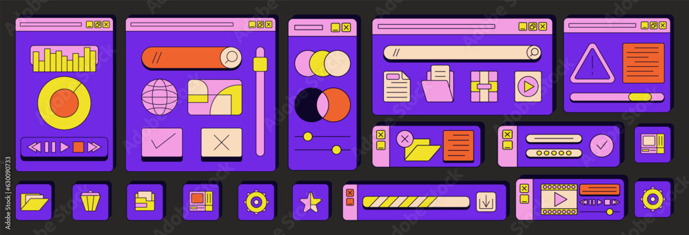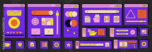 Wall mural : Retro cartoon set of web pages pc - old computer style - geometric frames in 90s memphis style - set of