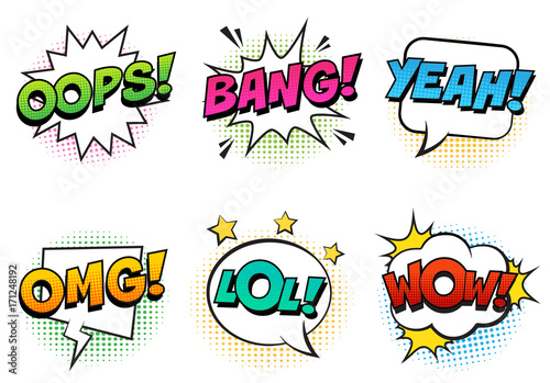 The watermark will not be included on Wall mural.: Retro comic speech bubbles set with colorful halftone shadows on white background - expression text l