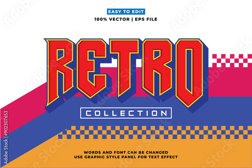 The watermark will not be included on Wall mural.: Retro editable text effect style - retro vintage nostalgic vibes 3d cartoon style premium vector