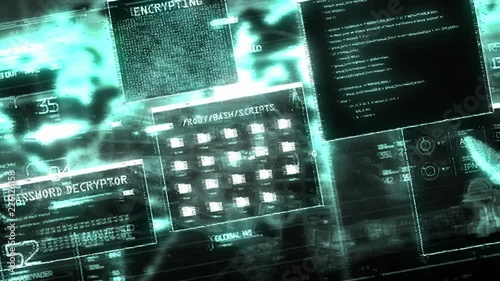 Retro hacker screen witch heavy distortion glitch fx - password and data decryption - green blue versiWall mural