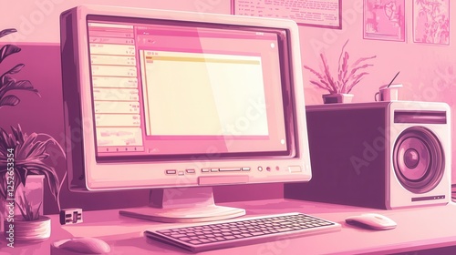 Wall mural : Retro old computer user interface,pink y2k computer window page and retro interface of pc screentren