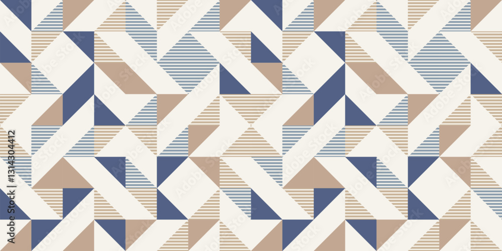 The watermark will not be included on Wall mural.: Retro style diagonal stripes and angular shapes - quilt blocks design, seamless repeating vector patt