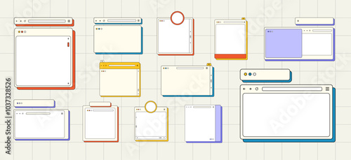 The watermark will not be included on Wall mural.: Retro ui frame text box vector set collection - retro desktop windows, message boxes, and user interf