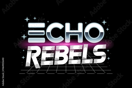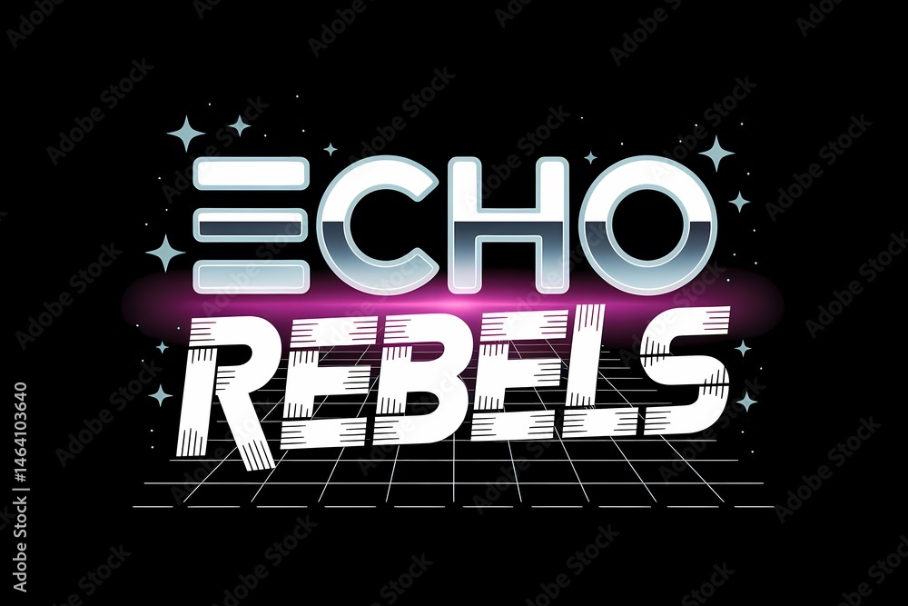 The watermark will not be included on Wall mural.: Retro wave styled text effect with grid and stars for eighties themed design