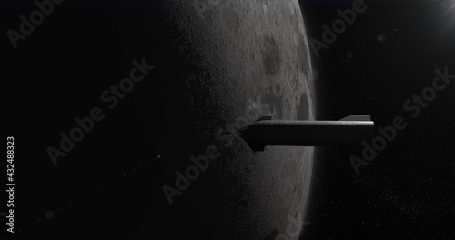 Wall mural reusable spaceship rocket approaching moon, space colonization concept. realistic 3d rendering - Wall murals Wall mural reusable spaceship rocket approaching moon, space colonization concept. realistic 3d rendering - Wall murals