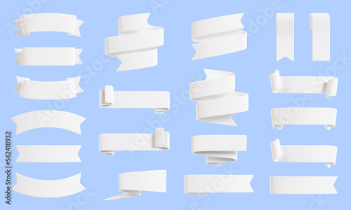 The watermark will not be included on Wall mural.: Ribbon banner 3d render set - collection of white glossy text box for sale or discount promotion sig