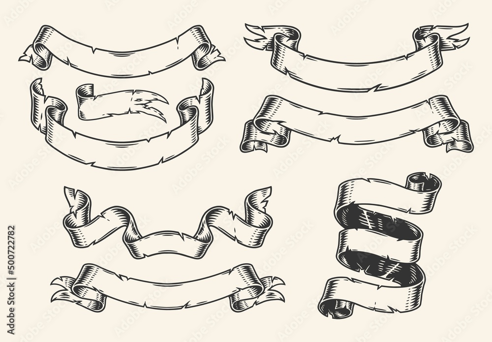 The watermark will not be included on Wall mural.: Ribbons banner set vintage emblem