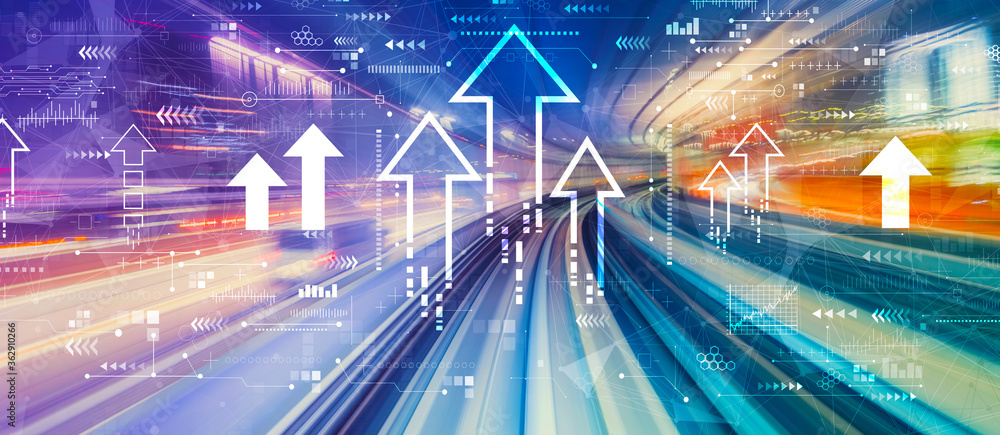 Wall mural rising arrow theme with abstract high speed technology pov motion blur