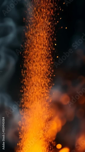 The watermark will not be included on Wall mural.: Rising fire sparks creating a dazzling display on a black background