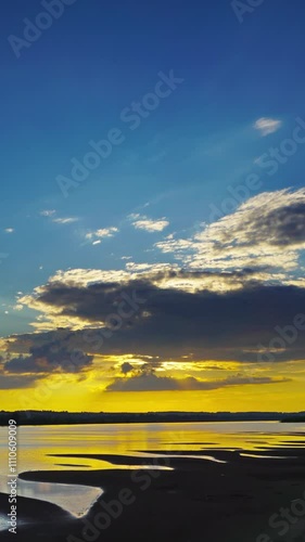 The watermark will not be included on Wall mural.: River sunset landscape, timelapse - vertical video