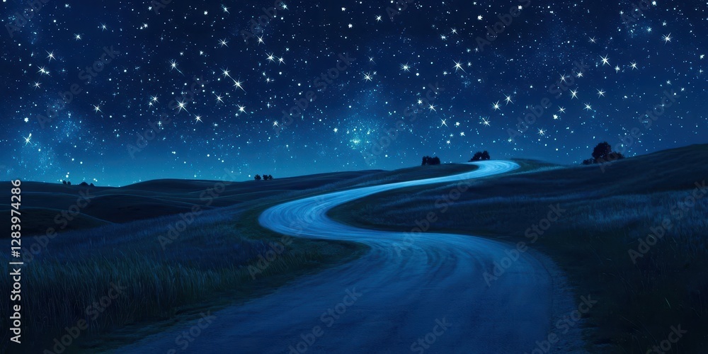 The watermark will not be included on Wall mural.: Road with a curve in the middle of a field