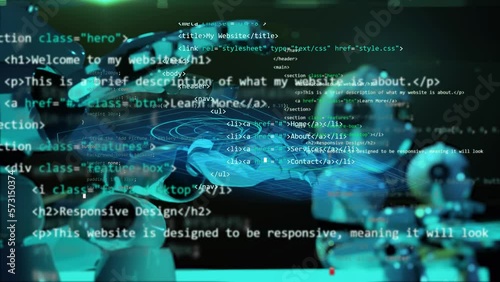 Wall mural robot or chatbor with ai working on human jobs. humanoid typing on virtual hud style interface keybo