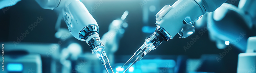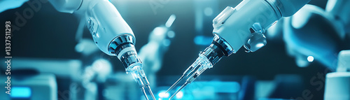 Wall mural : Robotic arms collaborating in a laboratory setting high-tech innovation futuristic environment close
