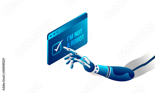 Wall mural robotic hand clicking on captcha 'i am not a robot'. artificial intelligence(ai) concept. - Wall murals Wall mural robotic hand clicking on captcha 'i am not a robot'. artificial intelligence(ai) concept. - Wall murals