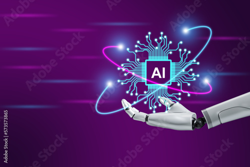 The watermark will not be included on Wall mural.: Robotic hand showing modern circuit diagram and artificial intelligence word ai next generation conn