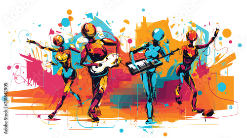 Wall mural robotics in entertainment with a vector art piece illustrating robotic performers on stage. robots e