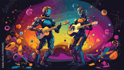 The watermark will not be included on Wall mural.: Robotics in entertainment with a vector art piece illustrating robotic performers on stage - robots e