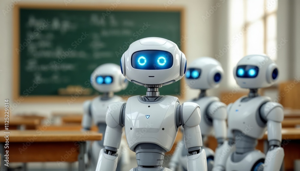Wall mural robots assisting in education classroom setting digital learning modern technology close-up view - Wall murals Wall mural robots assisting in education classroom setting digital learning modern technology close-up view - Wall murals