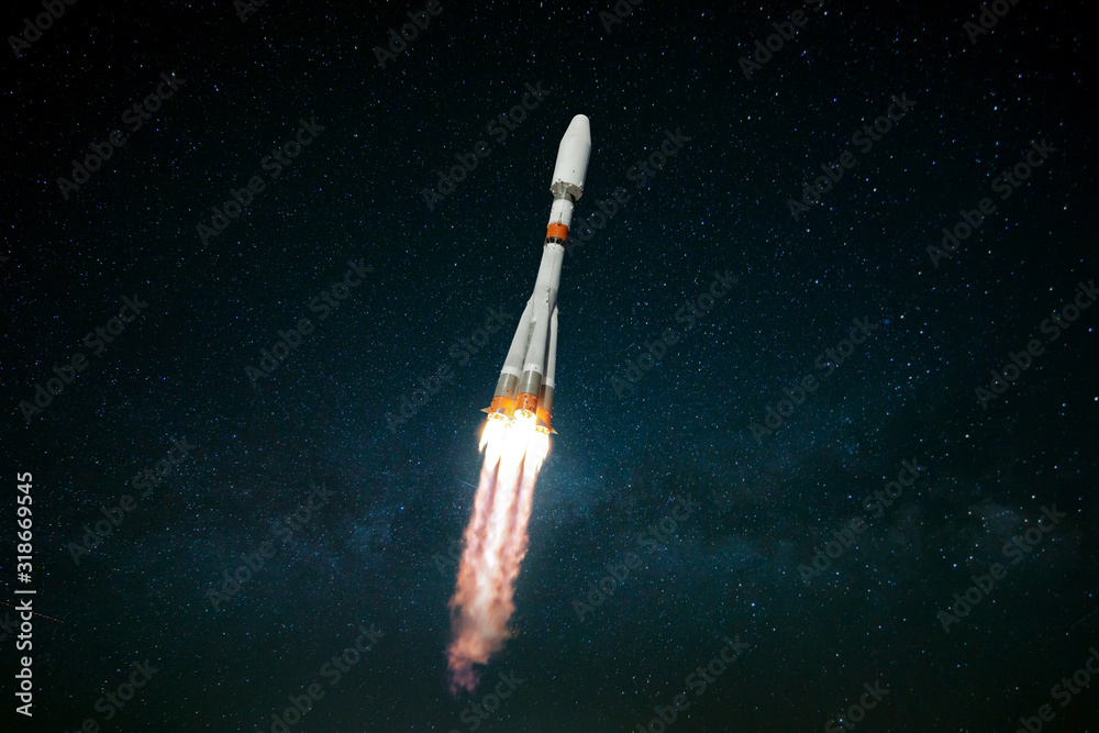 The watermark will not be included on Wall mural.: Rocket flies on the background of the starry sky, real spaceship in flight, launch rocket - flying ro