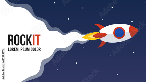 The watermark will not be included on Wall mural.: Rocket flying in space, header template for website with tile