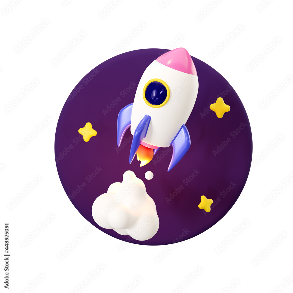 Wall mural : Rocket launch icon - business startup development - isolated on white background - 3d render