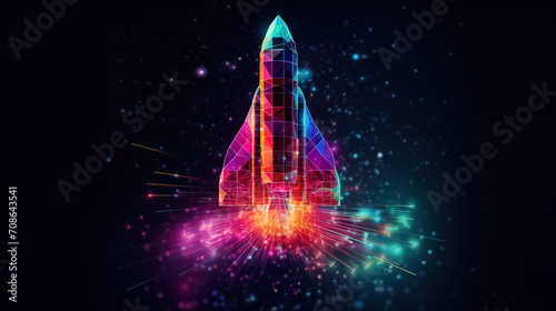 The watermark will not be included on Wall mural.: Rocket launch - business startup concept form lines, triangles and particle