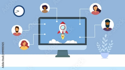 Wall mural rocket on desktop screen animation..people network connection.4k motion animation - Wall murals Wall mural rocket on desktop screen animation..people network connection.4k motion animation - Wall murals