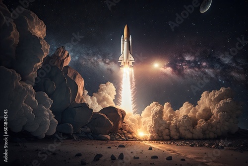 Wall mural : Rocket start, with view of outer space, and stars visible in the background, created with generative