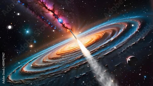 Wall mural : Rocket with galaxy vortex in space - seamless looping time-lapse 4k video animation background