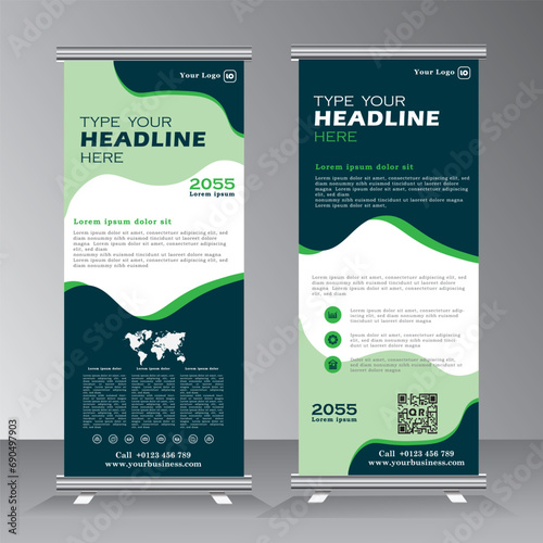 Roll up banner design template with image space, vertical banner design with green color, polygon stWall mural