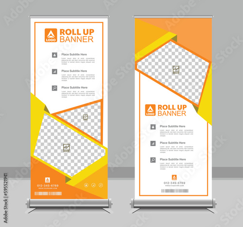 The watermark will not be included on Wall mural.: Roll-up banner layout with abstract low poly line elements - business banner
