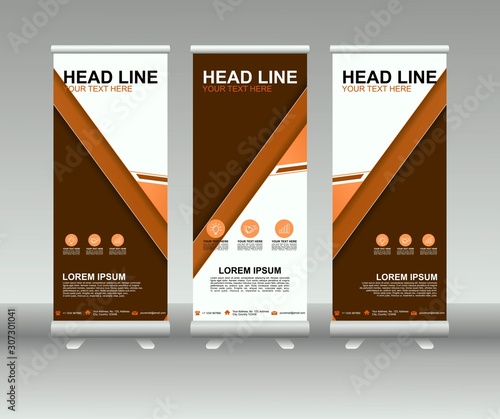 Wall mural roll up banner stand. modern vertical flag banner template design with abstract background can be us