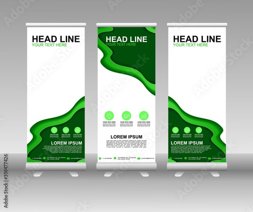 Wall mural roll up banner stand. vertical vector template design. modern flag banner design with abstract backg