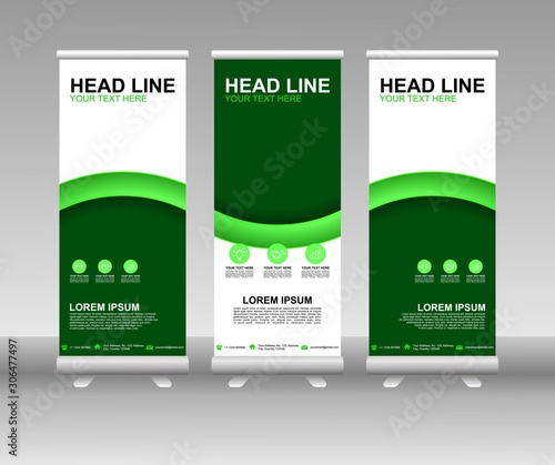 Roll up banner stand - vertical vector template design - modern flag banner design with abstract backgWall mural