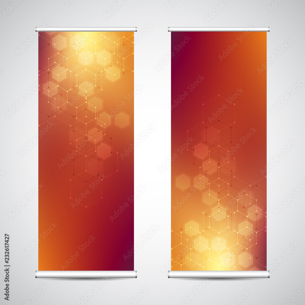 Wall mural roll up banner stands with abstract geometric background of hexagons pattern. hi-tech digital backgr