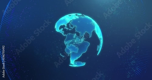 The watermark will not be included on Wall mural.: Rotating digital earth - repeatable footage - zoom out from earth - global network and digital data tech