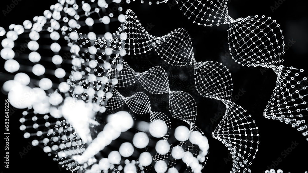Wall mural rotating movement of flying spheres in space. design. monochrom spiral shapes of small dots.