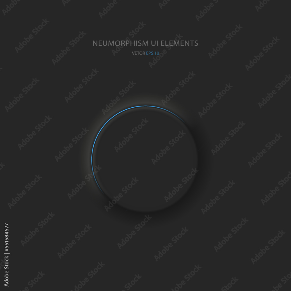 The watermark will not be included on Wall mural.: Round black button in neumorphic style with blue backlight - user interface design elements - vector i