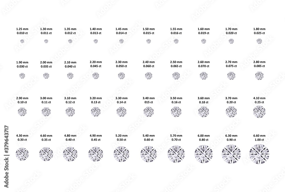 The watermark will not be included on Wall mural.: Round diamond sizing guide approximation in white background