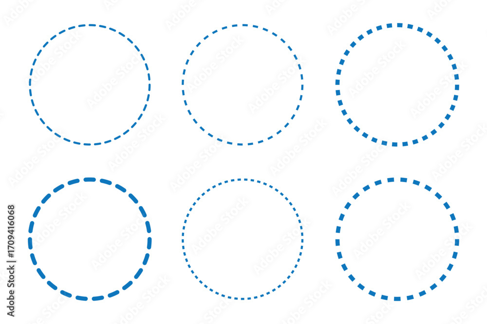 Wall mural round dotted circle set, dotted line circle frame, circle shapes with and dots and dashed lines - Wall murals Wall mural round dotted circle set, dotted line circle frame, circle shapes with and dots and dashed lines - Wall murals
