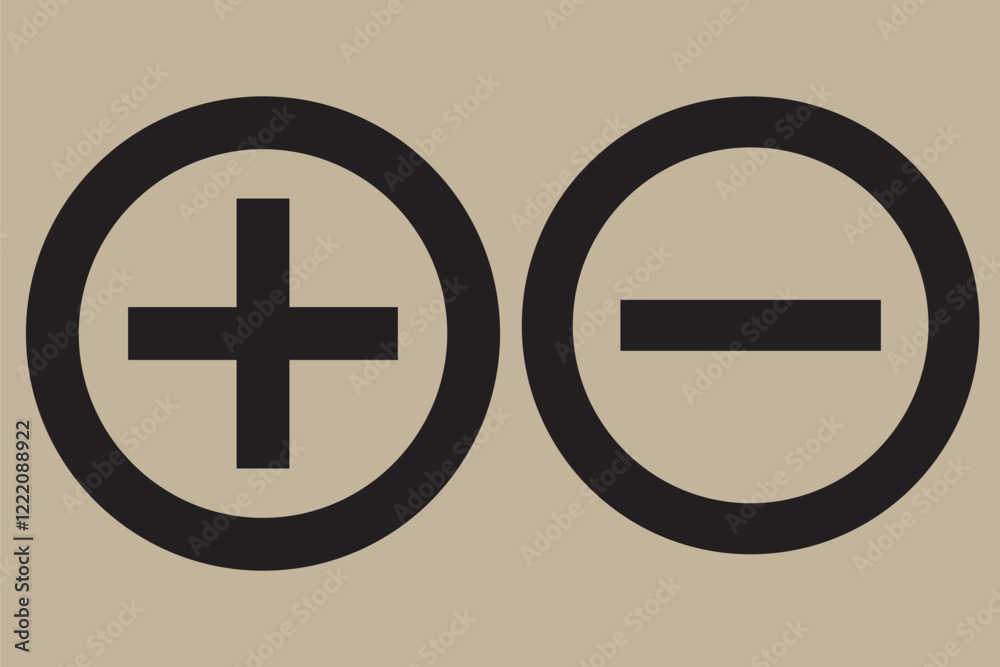 The watermark will not be included on Wall mural.: Round plus sign and minus sign icon set - vector -