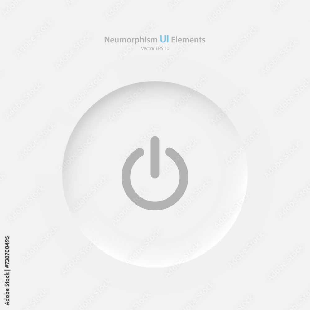 The watermark will not be included on Wall mural.: Round power button on a white background - user interface elements in the style of neumorphism, ux - v