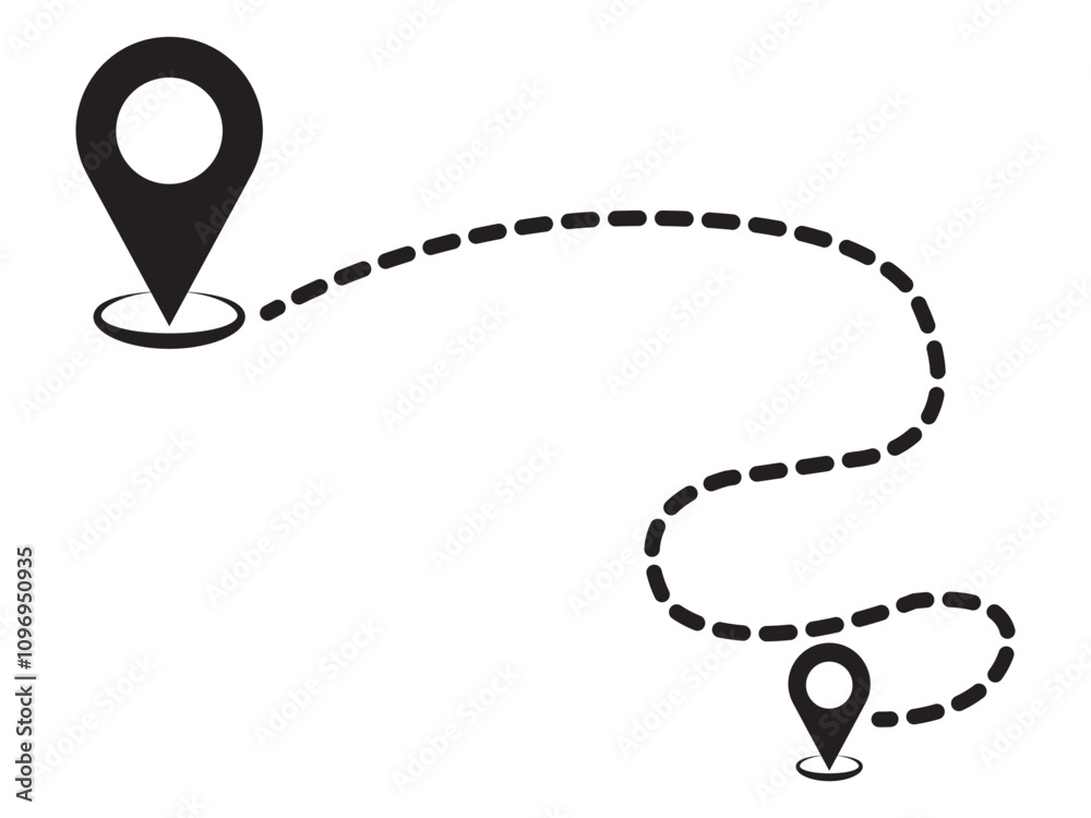 Wall mural route icon between two points with dotted path and location pin. gps navigation line route mark.loca - Wall murals Wall mural route icon between two points with dotted path and location pin. gps navigation line route mark.loca - Wall murals