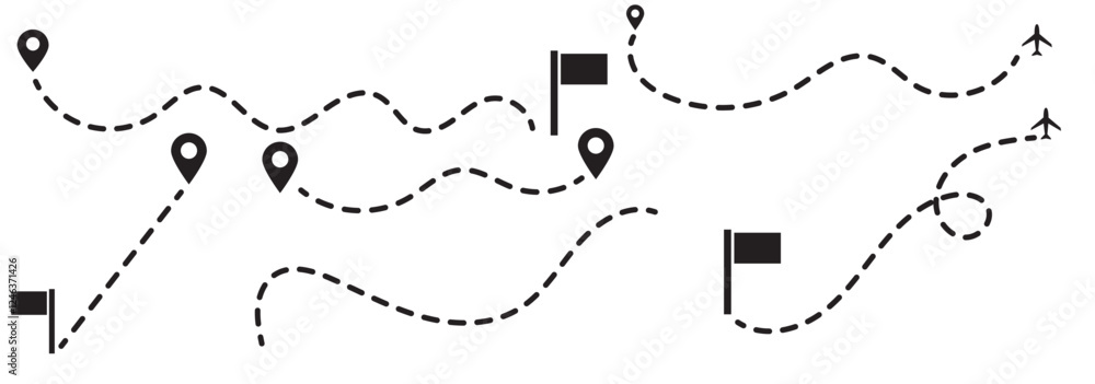 Wall mural route icon - two points with dotted path and location pin. route location icon two pin sign and dott - Wall murals Wall mural route icon - two points with dotted path and location pin. route location icon two pin sign and dott - Wall murals