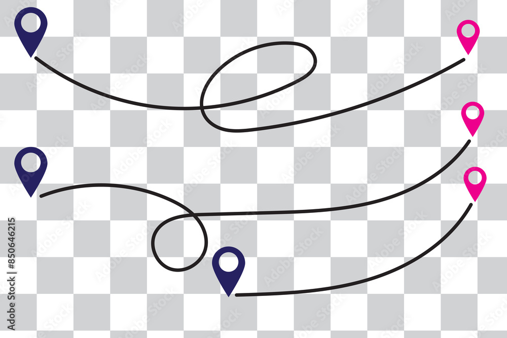 Wall mural route icon - two points with dotted path and location pin. route location icon two pin sign and dott - Wall murals Wall mural route icon - two points with dotted path and location pin. route location icon two pin sign and dott - Wall murals