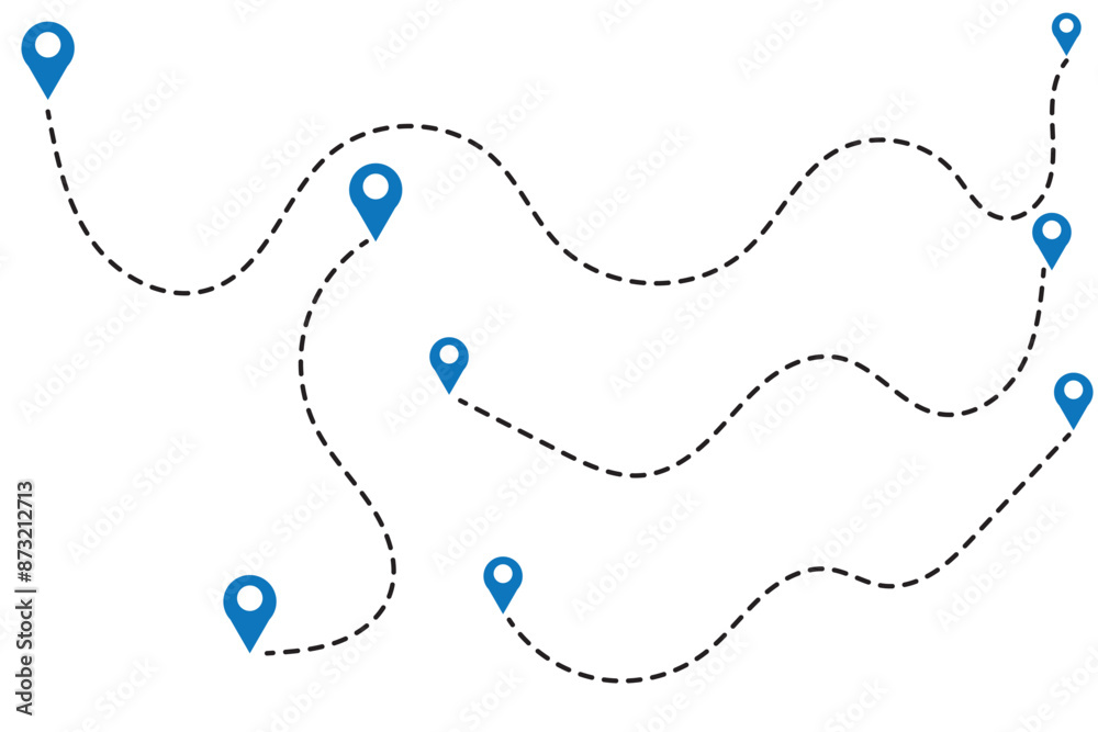 Wall mural route icon - two points with dotted path and location pin. route location icon two pin sign and dott - Wall murals Wall mural route icon - two points with dotted path and location pin. route location icon two pin sign and dott - Wall murals