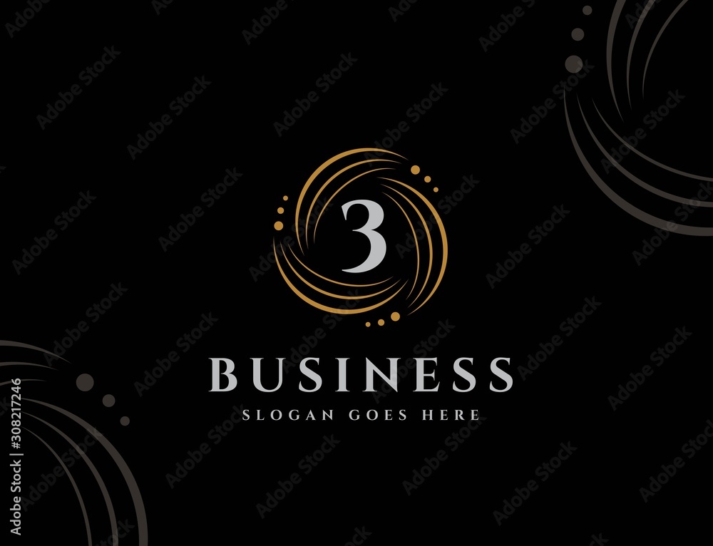 Royal circle gold orbit with dots initial number 3 logo design vector graphicsWall mural