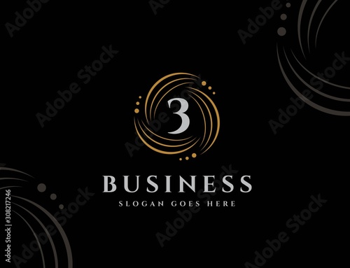 Wall mural : Royal circle gold orbit with dots initial number 3 logo design vector graphics