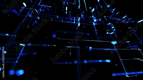 Running lights, glowing particles - abstract looped background as technological concept with many bluWall mural